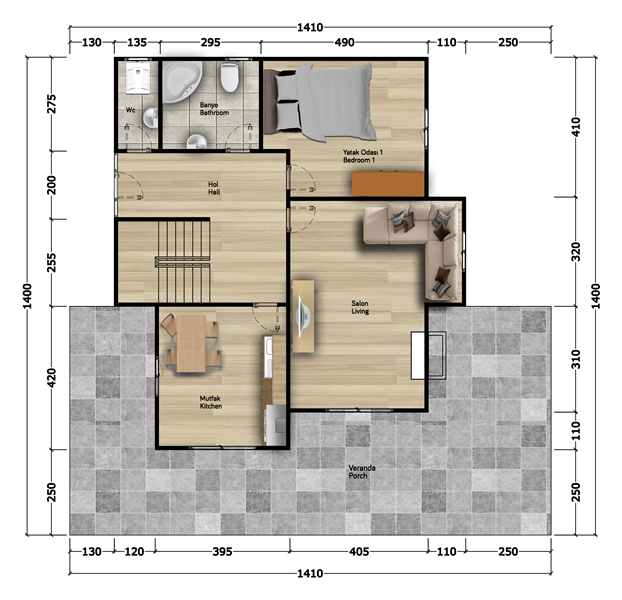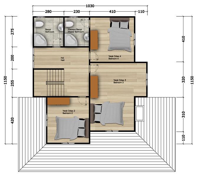 | Kullanım Alanı | 265 m² | Oda Sayısı | 4+1 | Veranda | 65 m² |