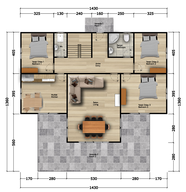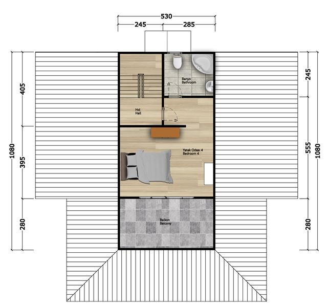 | Balkon | 15 m² | Hol | 4 - 20 m² | WC-Duş | 6 - 6 - 6 - 3 m² |
