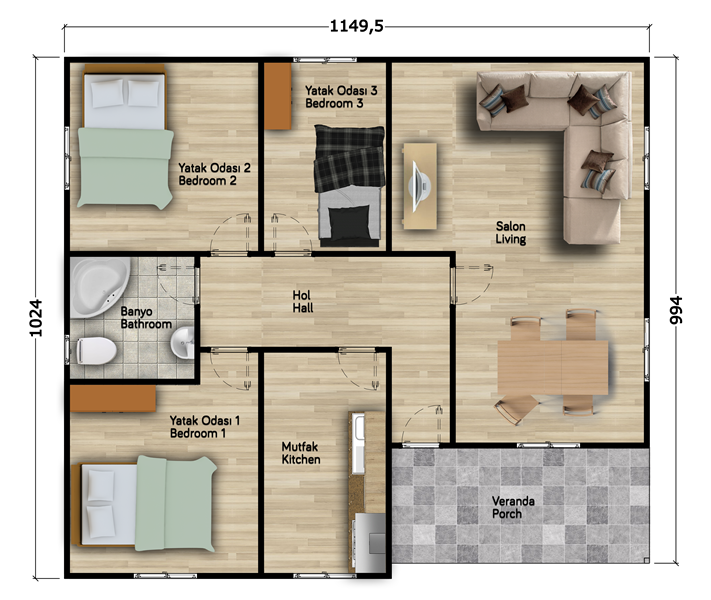 | Kullanım Alanı | 118 m² | Oda Sayısı | 3+1 | Veranda | 11,5 m² |